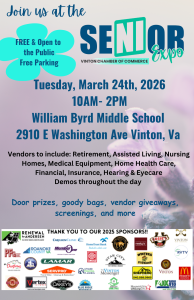 You’re invited to attend the Annual Senior Services Expo, hosted by the Vinton Area Chamber of Commerce.