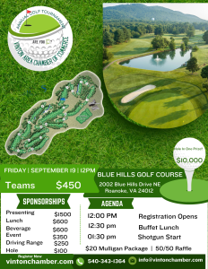 $100 company name and logo exposure for tournament- – listed as hole sponsor at flag logo on web site & social medias